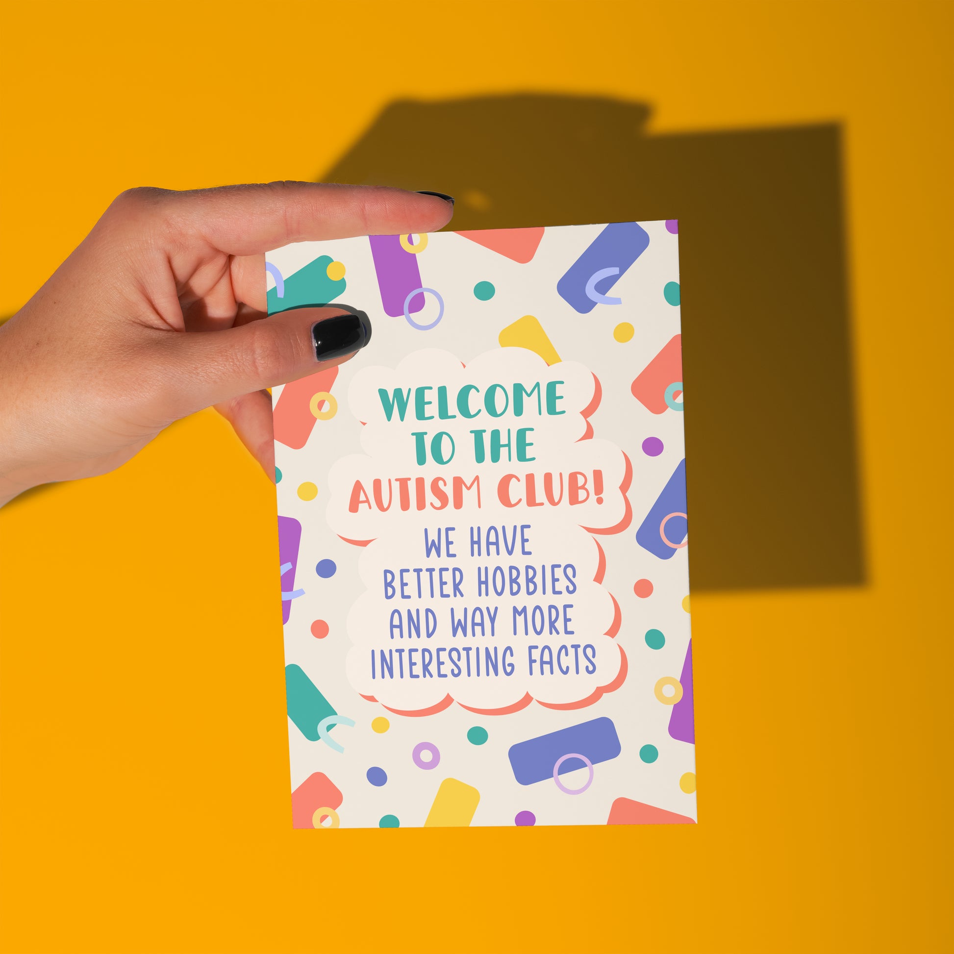 This card is for the people who skip the small talk in favour of deep dives and niche hobbies. It celebrates the Autistic experience of finding joy in specialised knowledge and having a brain full of actually interesting facts.