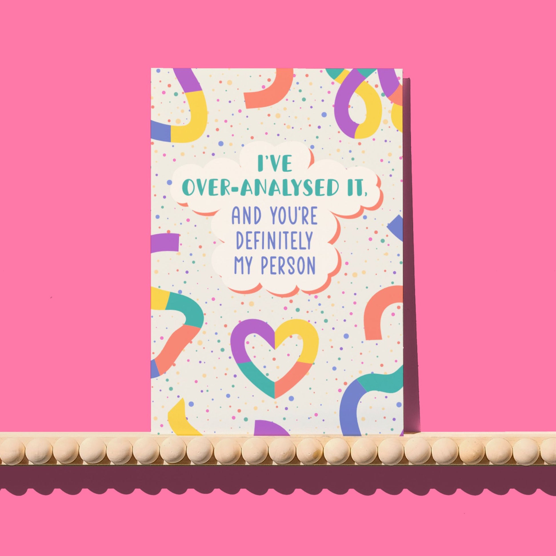 For the deep thinkers who don't do anything by halves. This card acknowledges the tendency to over-analyse every detail - and the lovely moment you realise that, after all that thought, someone is definitely "your person."